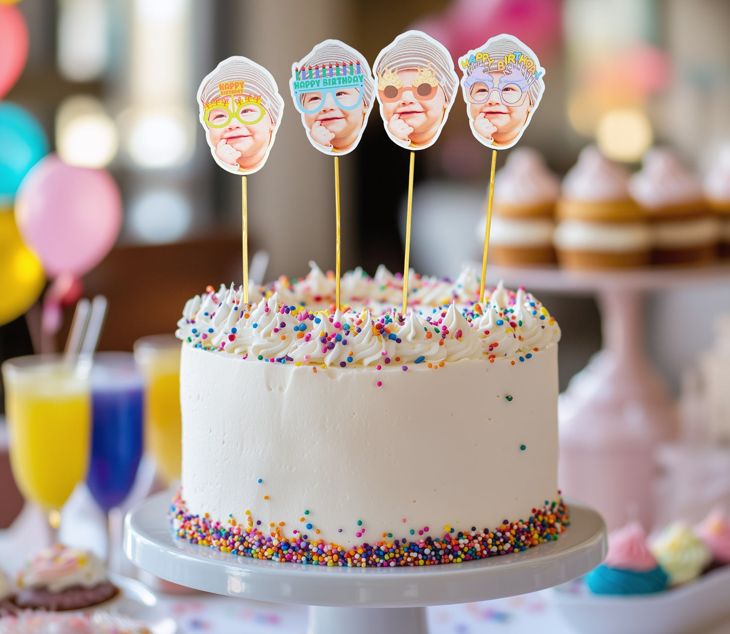 Özel günlerinizi unutulmaz ve tamamen size özel detaylarla taçlandırın! Kişiye özel fotoğraflı cupcake & pasta süsü seti, doğum günü, bekarlığa veda, bridal shower, baby shower, nişan ve yıl dönümü gibi tüm kutlamalar için eğlenceli ve dikkat çekici bir sunum sağlar.