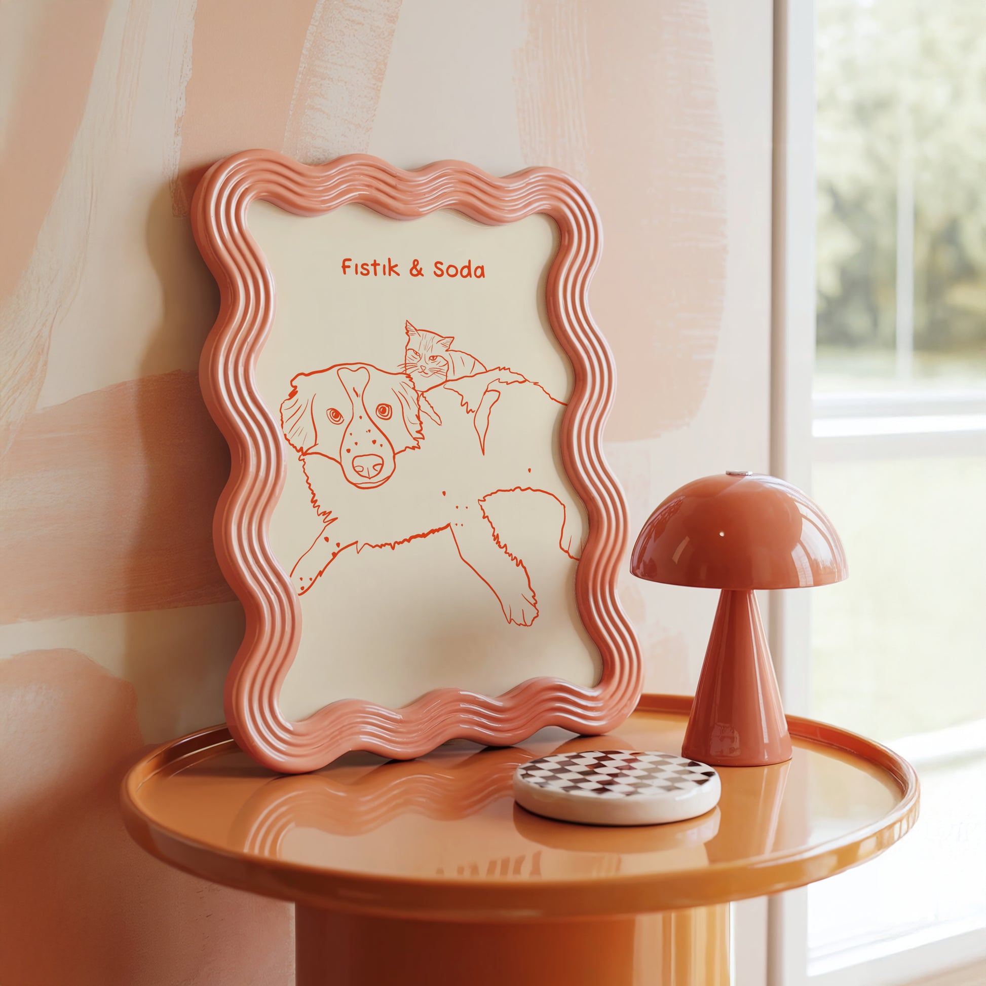 Kişiye özel dijital el çizimi evcil hayvan posteri; doğum günü, yeni ev hediyesi, evcil hayvan sahipleri için anlamlı bir armağan veya anı posteri olarak tercih edilebilir.