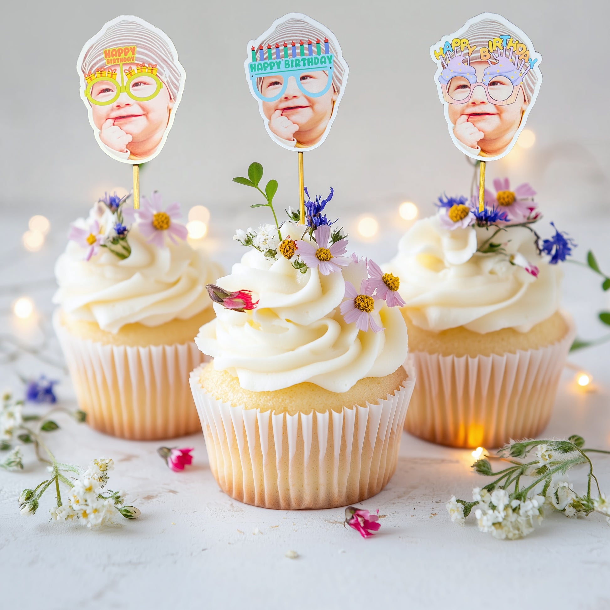 Kutlamalarınıza hem kişisel hem de estetik bir dokunuş katmak için kişiye özel fotoğraflı cupcake & pasta süsü setini tercih edin; anılarınızı tatlı bir sunuma dönüştürün.